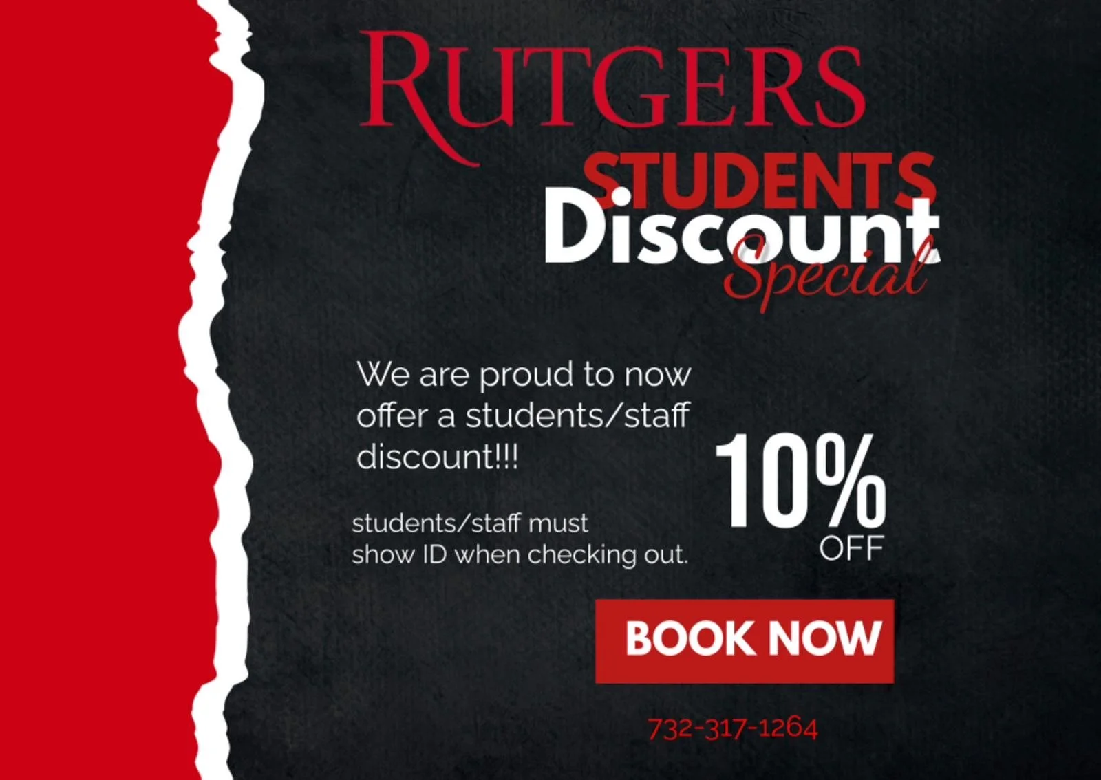 We offer a 10% off on any service to all Rutgers students, you can redeem at checkout or use code: RU10 when booking online.