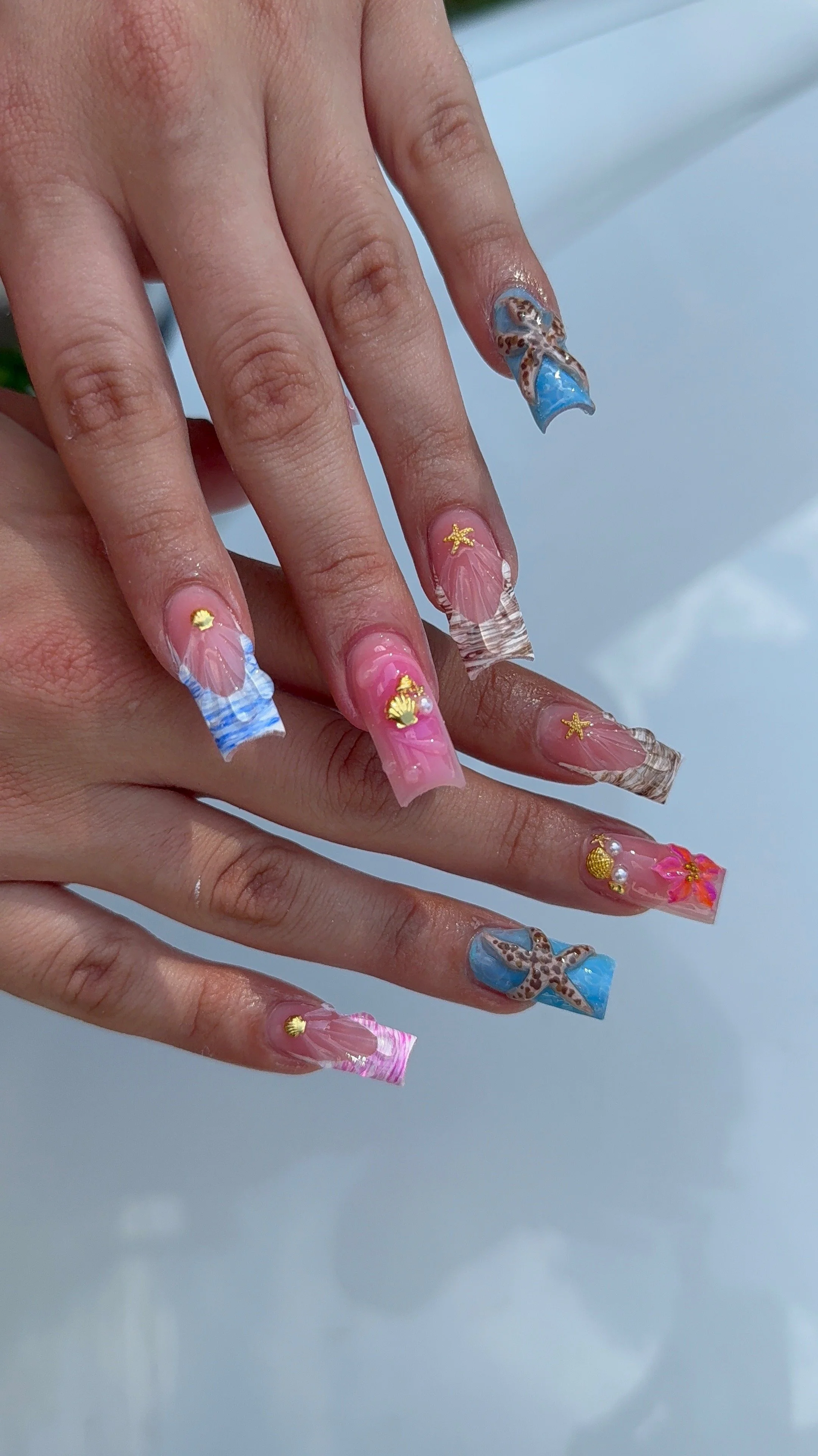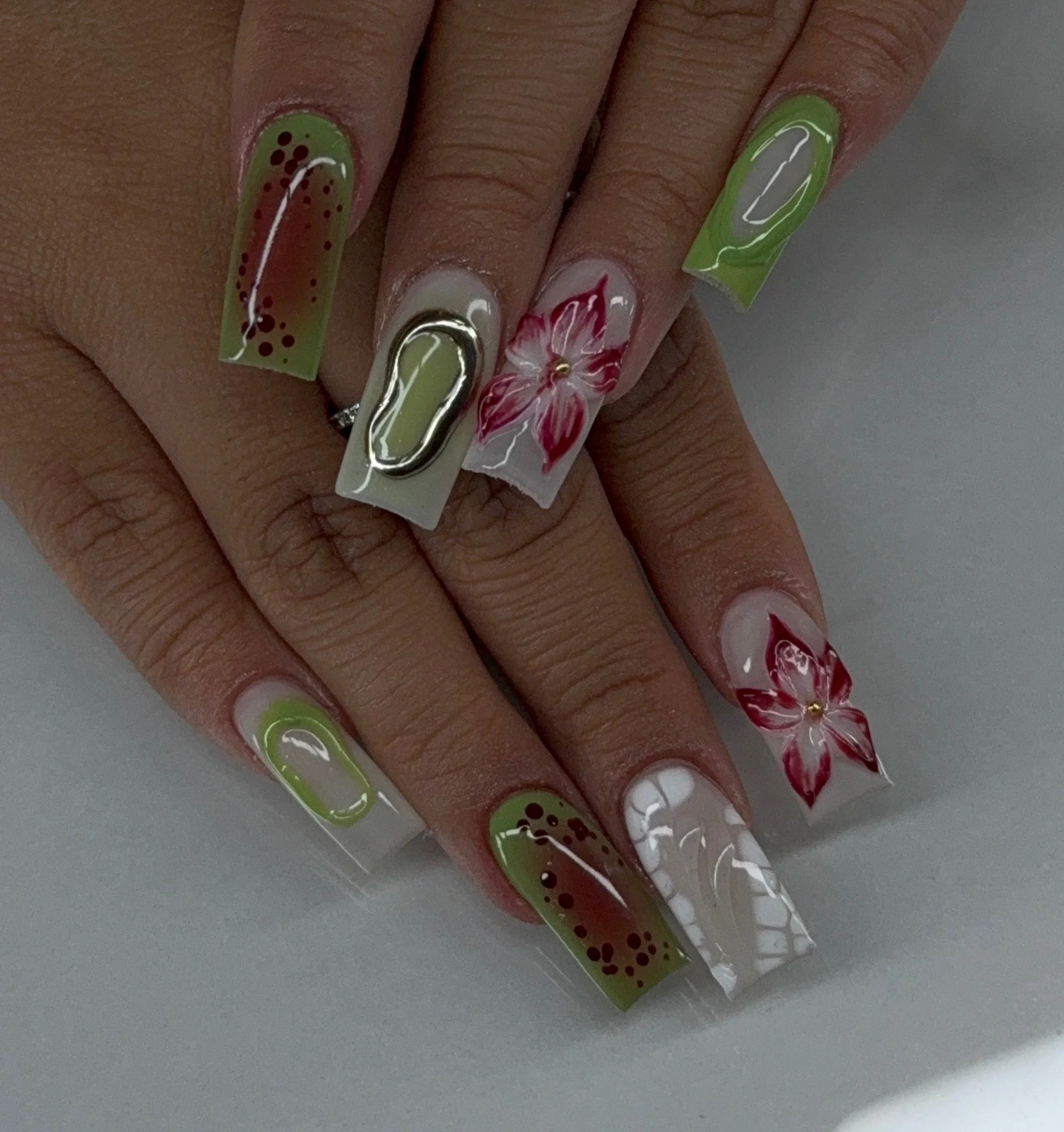 Is a clear acrylic fullset short/medium length. Any shape and includes gel polish. All our combo comer with a gel pedicure. Any design must add it in the add ons section.